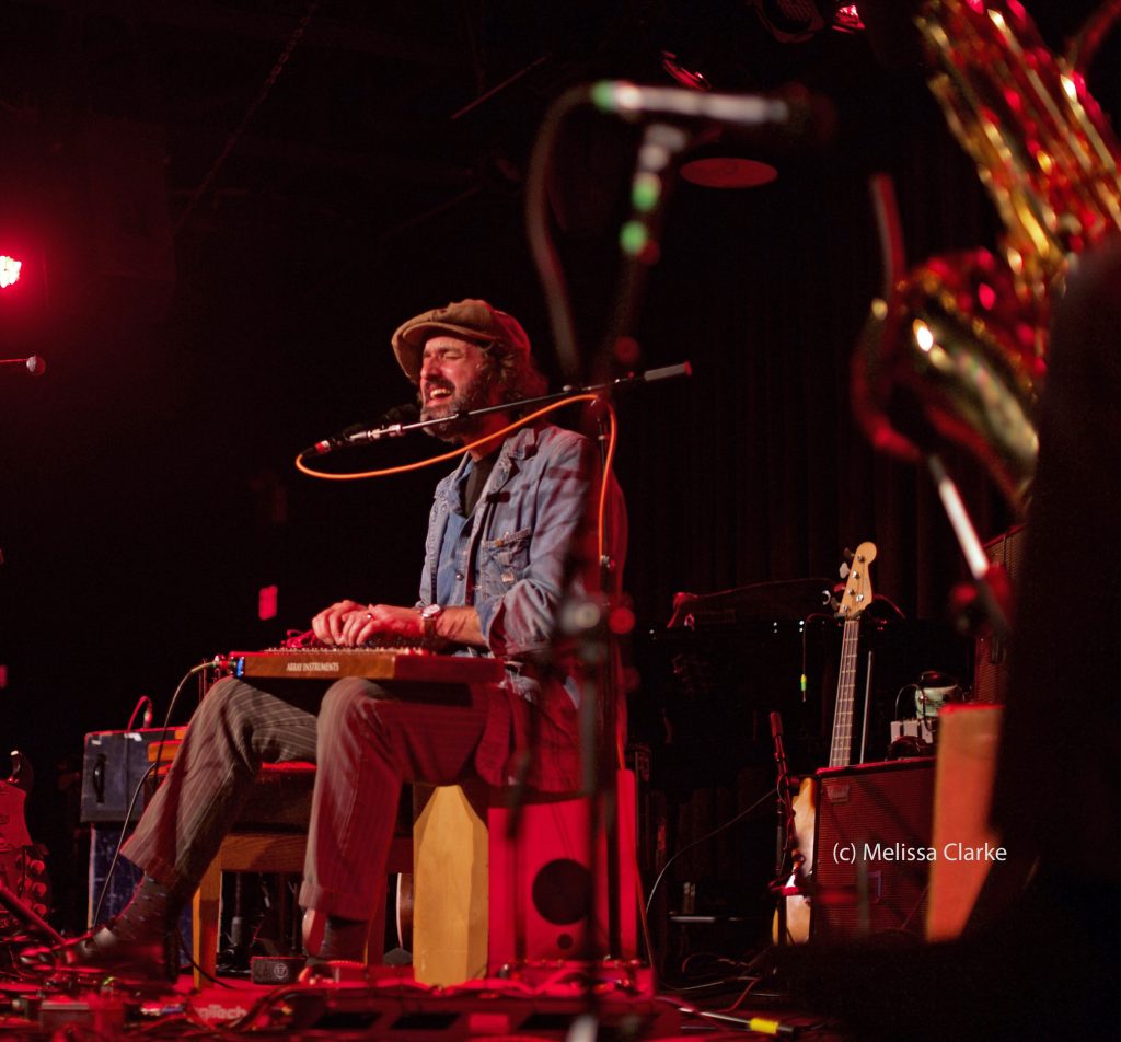 “Because the Moonlight” had sound effects like tinker toys, and the interplay between the instruments was like a magical electronic musical workshop. At this point Joachim announced the closing number “Fuscia Machu Picchu,” which is the title track from his recent EP release on Temple of Leaves; the announcement was the first time he spoke to signal the hypnosis was drawing to a close. (Read our review of the EP by clicking any of these bolded words right here.) This song held the crowd mesmerized with its flute-like tones, the sax holding down deep rhythms, and a taped echo effect. Cooder’s muted vocals seemed suspended above the music.