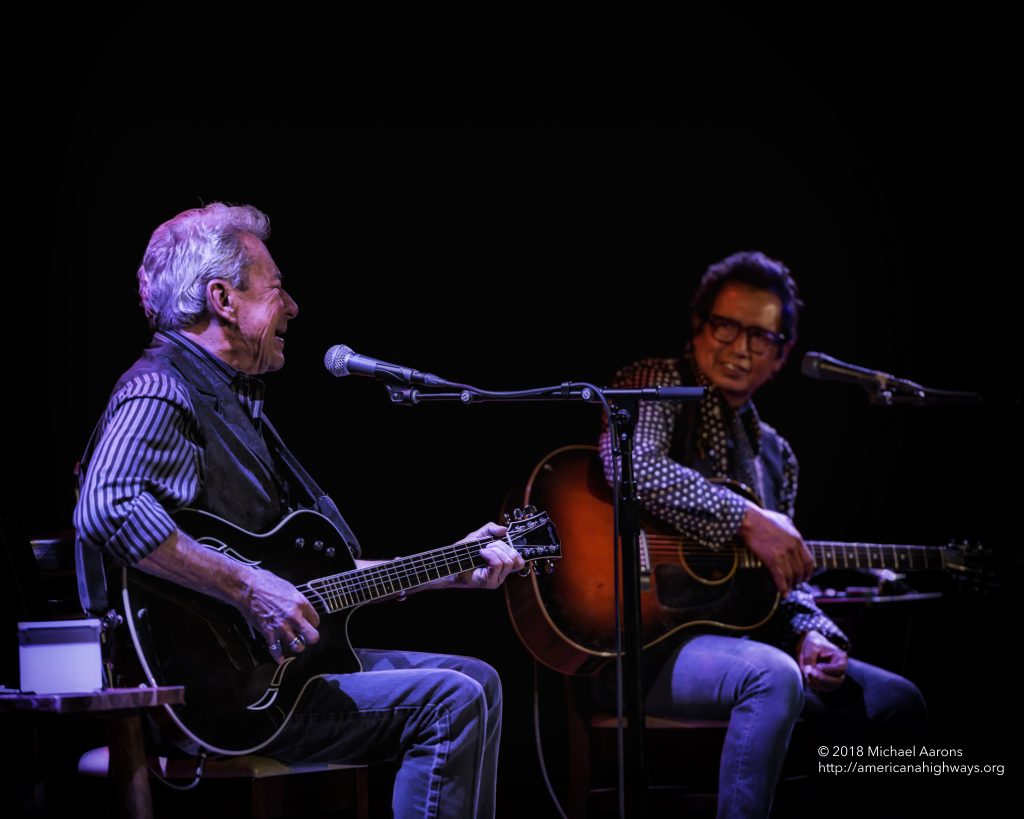 Ely, 71, and Escovedo, 67, may be getting on in years, but they still sound great, and they had a wealth of material to draw on. Escovedo started things off with a heartbreaking story of how, when he was a child, his family suddenly moved from Texas to California, taking nothing with them, leading into “San Antonio Rain,” from his 2012 album, Big Station. This got Ely thinking of the reverse migration back to Texas, and he played the Flatlanders song “Homeland Refugee.” Ely played another Flatlanders tune, the classic “Tonight, Downtown,” after telling a delightful story about going to the dry cleaner owned by some family friends and trying on other people’s clothes.