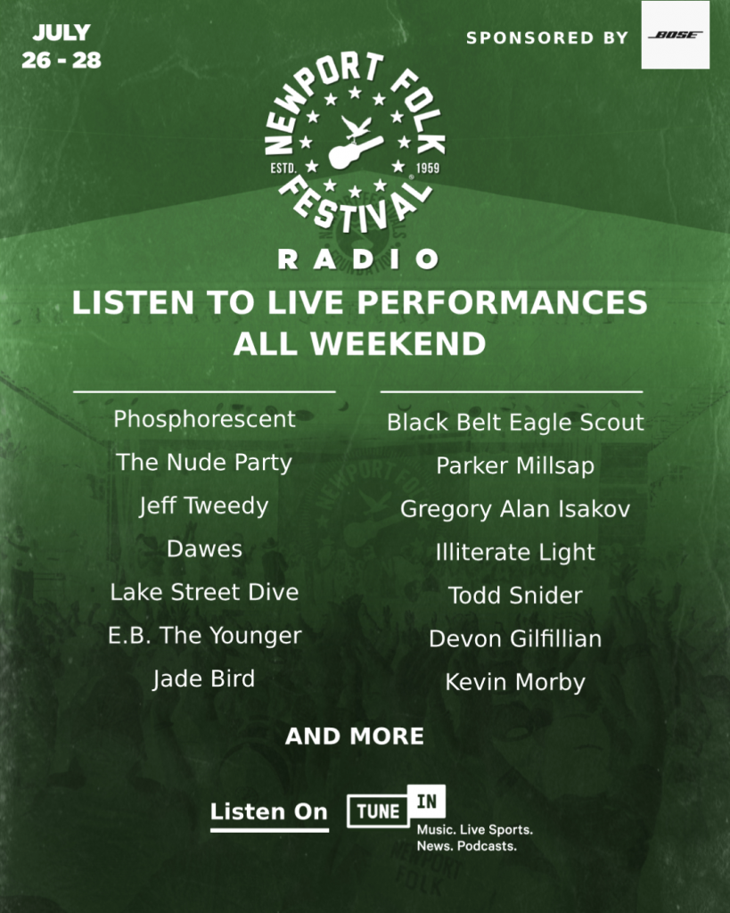 Stream the Newport Folk Festival right here! Americana Highways 7 years ago Advertisements Stream the Newport Folk Festival live, on Newport Folk Radio, right here: Share this: Share on X (Opens in new window) X Share on Facebook (Opens in new window) Facebook Share on Tumblr (Opens in new window) Tumblr Newport Folk Festival’s Folk OnDateJuly 16, 2021In relation toNews & EventsShow Review: A Look Back at Newport Folk Festival 2019DateAugust 21, 2019In relation toShow ReviewsNewport Jazz Festival 2021 Highlights Day One and TwoDateAugust 11, 2021In relation toShow Reviews