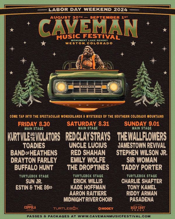 The 2024 lineup features The Wallflowers, Toadies, Red Clay Strays, Kurt Vile & the Violators, Uncle Lucius, Red Shahan, Jamestown Revival, Band of Heathens, Emily Wolfe, The Droptines, Stephen Wilson Jr., Sir Woman, Taddy Porter, Drayton Farley, Buffalo Hunt, Midnight River Choir, Charlie Shafter, and more. Tickets and accommodation packages are on sale now, and can be purchased at http://www.cavemanmusicfestival.com or by calling (719) 680-0580.